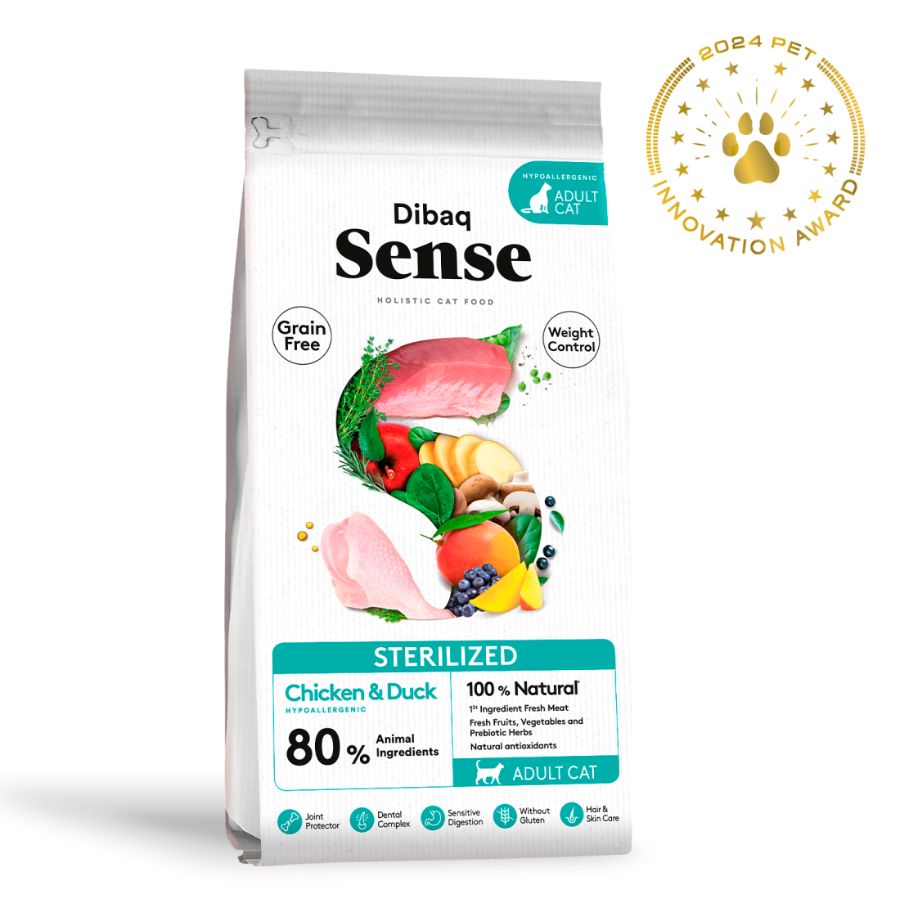 Dibaq Sense Grain Free Cat Sterilized Pollo & Pato 1.5 KG es un alimento completo hipoalergénico diseñado para gatos adultos de todas las razas.