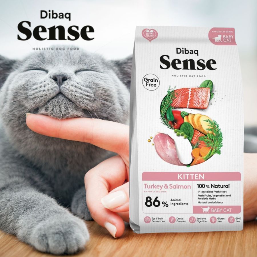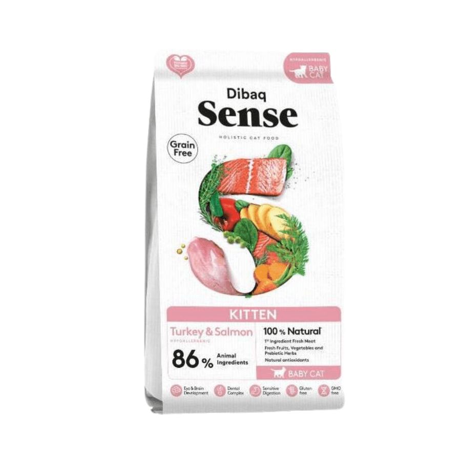 Dibaq Sense Grain Free Kitten Pavo & Salmón 1.5KG es un alimento completo hipoalergénico diseñado para gatitos de todas las razas desde el primer mes de vida hasta los 12 meses de edad.