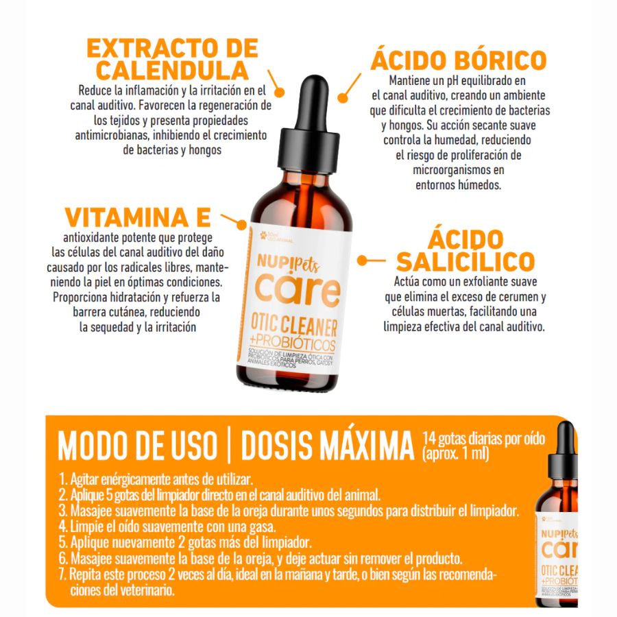 Limpiador Ótico Probiótico y Antimicrobiano para Mascotas NUP! Pets