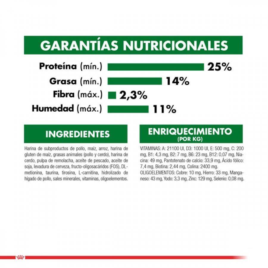 Coloque la cantidad de alimento sobre el comedero (ver tabla orientativa) Tenga en cuenta que las cantidades indicadas en la tabla orientativa variarán en función del peso, actividad física, etc., existiendo también un componente de variación relacionado con la individualidad de cada mascota. Si realiza algún cambio de alimentación que sea paulatino, a lo largo de 4 o 5 días, para evitar la aparición de desórdenes intestinales. Es muy importante que la mascota disponga siempre de agua limpia y fresca en abundancia. Mantener el envase bien cerrado en un lugar fresco y seco, aislado del suelo y procurando que esté alejado de los rayos del sol.